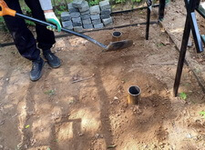 Приехав вновь на кладбище, мы взялись за очистку места захоронения от посторонних элементов: срезали болгаркой старое ограждение; пропололи сорную траву, а также разровняли землю, готовя её к покрытию бетонной плиткой.